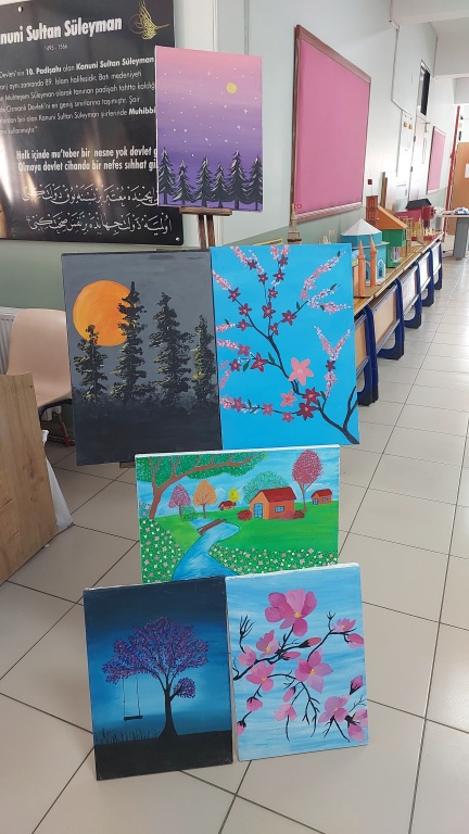 Görsel Sanatlar Öğretmenimiz Elif ŞİMŞEK ve Teknoloji Tasarım Öğretmenimiz Tülay GÜVEN önderliğinde öğrencilerimizin yaptıkları resimler ve maketler okulumzda sergiye sunuldu.